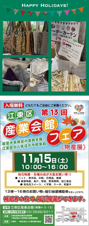 詳しくは[江東区産業会館]のホームページ→[イベント情報]をご覧ください。